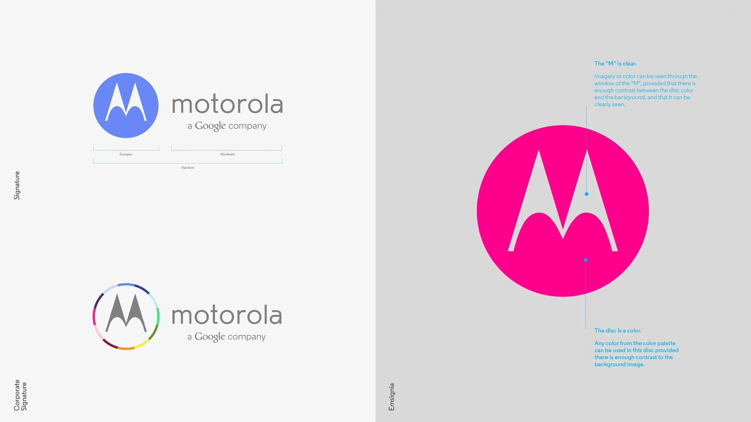 Motorola’s iconic Emsignia remained the brand’s core mark, celebrated for its strength and flexibility. Used on its own across a wide range of applications, it supported the expressiveness of the Emdoodle and was brought to life through the open use of color from the new palette.