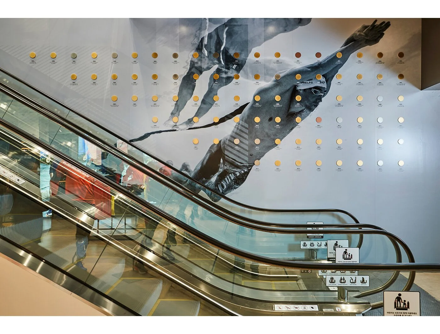 The 1,983-square-meter, two-story flagship was designed as an immersive, brand-defining environment. The concept integrated spatial planning, visual identity, in-store storytelling, and evergreen design elements tailored to Korean consumers. Key brand experience zones—dedicated to running, basketball, and golf—offered curated, category-specific journeys.